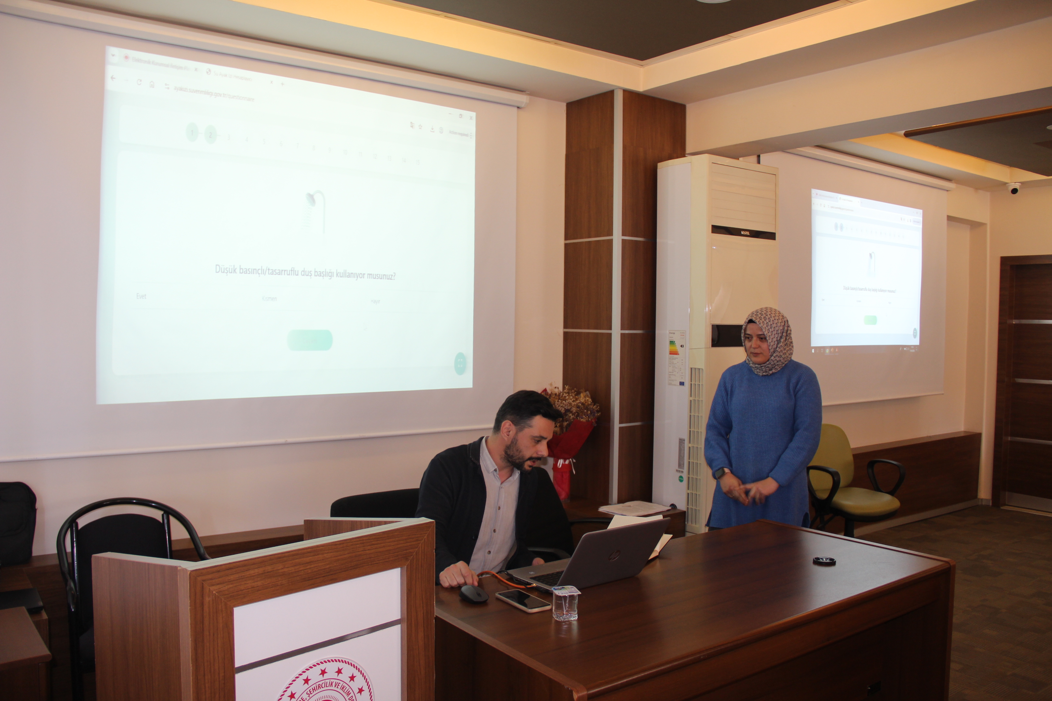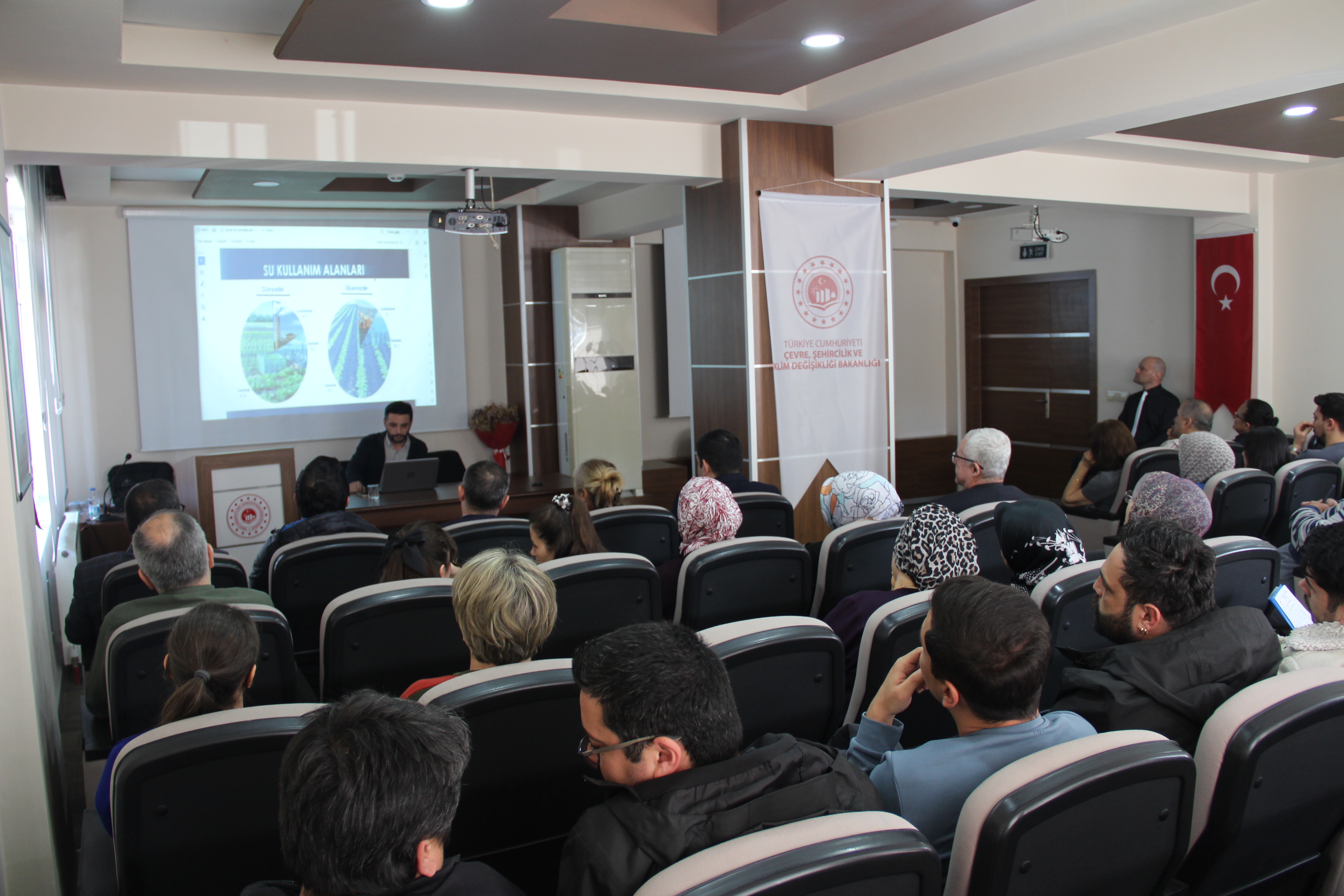 İl Müdürlüğümüz Su Verimliliği eğitim sorumlumuz Murat DİKİLİTAŞ tarafından verilen programda; su tasarrufu yöntemleri, suyun bilinçli tüketimi, kurumsal uygulamalar ve sürdürülebilir su yönetimi konuları ele alındı. Eğitim süresince katılımcılara, günlük hayatta ve çalışma ortamında uygulanabilecek pratik bilgiler aktarılırken, su verimliliğinin önemi vurgulandı.